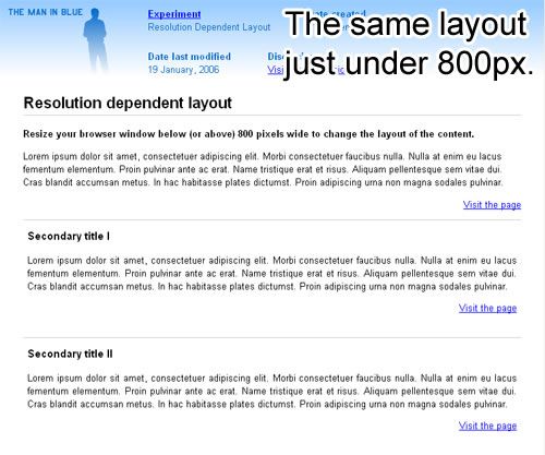 大多數(shù)流動(dòng)布局在分辨率為800×600的屏幕中看起來很大很寬--高達(dá)1280px。但是,我們可以稍稍突破一下,針對800px-1024px、1024px-1280px、1280px以上的屏幕定制略微不同的布局。同樣,也可為640px-800px、320px-640px、240px-320px、240px以下的屏幕自定義調(diào)整。