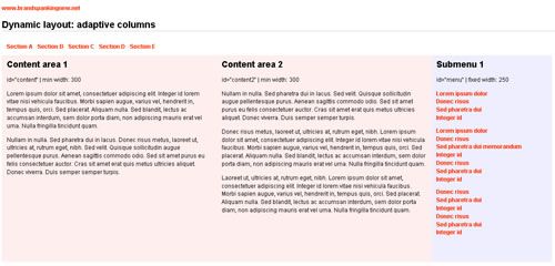 這種概念并不難,關(guān)于此技術(shù)每個(gè)開發(fā)者都有自己的腳本,Clagnut.com博客的回帖中有更多關(guān)于自適應(yīng)內(nèi)容的布局和腳本--“Variable fixed width layout“,在其回帖中甚至有一種技巧無需任何腳本--CSS Drop Column Layout
