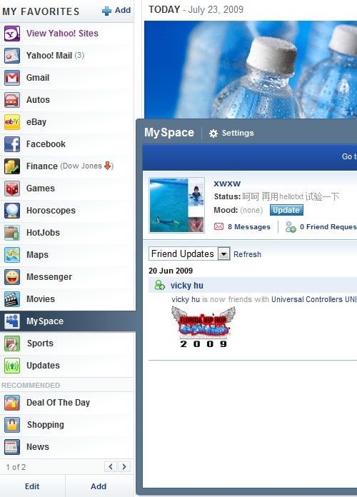 所以為了凸顯門(mén)戶網(wǎng)站的搜索特性,所以上面說(shuō)道搜索部分采用了新的設(shè)計(jì)。而為了凸顯門(mén)戶網(wǎng)站目錄的特性,雅虎這次改版也從新設(shè)計(jì)了左側(cè)導(dǎo)航。左側(cè)導(dǎo)航不僅可以自定義雅虎本身提供的服務(wù),還可以自定義當(dāng)下其它站點(diǎn)的服務(wù),譬如ebay,facebook,mysapce等。而這次雅虎最關(guān)鍵的一點(diǎn)不僅是解決定制的問(wèn)題,而且還試圖解決信息問(wèn)題。就是說(shuō)不僅希望用戶可以自定義網(wǎng)站目錄,而且還可以在上面處理這些站點(diǎn)的信息。