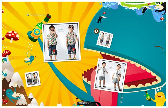皮膚是個(gè)性相冊設(shè)計(jì)中最主要的部分,為了追求視覺效果,起初我們使用顏色構(gòu)圖都很講究的攝影作品作為圖例,將它們按加載后照片的位置結(jié)合皮膚進(jìn)行整體構(gòu)圖和顏色調(diào)整。在設(shè)計(jì)了兩款相冊后發(fā)現(xiàn):原本色調(diào)統(tǒng)一、構(gòu)圖活潑的畫面卻因?yàn)橛脩粝嗥娲藬z影圖片而變得整體效果雜亂,主次不清,作為主體的相片在豐富的皮膚圖案里黯然失色。這是為什么?