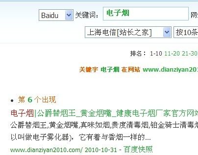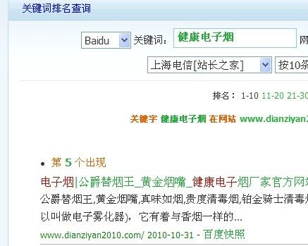 收錄內(nèi)頁(yè)以后的第1天,關(guān)鍵字排名放出來(lái)了,關(guān)鍵字:電子煙 排名11