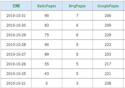 首頁(yè)被收錄以后,興奮一段時(shí)間,然后繼續(xù)枯燥的完成每日必須完成的任務(wù),還是圍繞原創(chuàng)文章,外部鏈接,友情鏈接,堅(jiān)持做了一個(gè)月零6天,在10月25日的時(shí)候,百度開(kāi)始收錄我的內(nèi)頁(yè)。