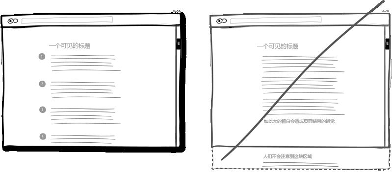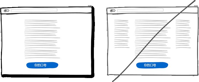 多次重復(fù)主旨口號(hào)這種方法適用于界面很長或者分頁的情況。首先你肯定不想滿屏刷出相同的信息,這樣會(huì)讓人生厭。但當(dāng)頁面足夠長的時(shí)候這些重復(fù)就顯示自然多了并且也不顯得擁擠。所在在頁面頂部放一個(gè)按鈕然后在頁面底部再適當(dāng)放個(gè)突出的按鈕的做法沒有什么不妥。這樣當(dāng)用戶到達(dá)頁面底部在思考接下來該做什么的時(shí)候,你提供的按鈕就可以獲得一個(gè)潛在的合同或者即使用戶不需要你的服務(wù)這個(gè)按鈕也可以起到過濾的作用。