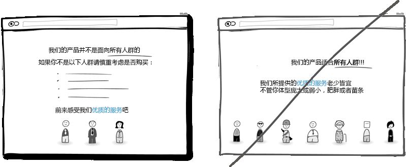 你是想把產(chǎn)品做成大眾化的呢還是有精確的適用人群?在產(chǎn)品定位上你需要更精確些。通過不斷了解目標(biāo)客戶的需求及標(biāo)準(zhǔn),你能把產(chǎn)品做得更好得到更多與客戶交流的機(jī)會(huì),并且讓客戶覺得你很專業(yè),在這方面是獨(dú)家提供的優(yōu)質(zhì)服務(wù)。把產(chǎn)品定位得精確的風(fēng)險(xiǎn)就是可能縮小了目標(biāo)潛在客戶的范圍,也使自身變得不那么全能。但這種做得更專業(yè)的精神卻反過來會(huì)贏得信任,權(quán)威。