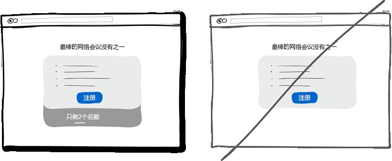 適當(dāng)?shù)木o迫感是個(gè)有效的戰(zhàn)術(shù)可以讓用戶立即做出決定而不是等上個(gè)十天半個(gè)月。重要的是這種戰(zhàn)術(shù)屢試不爽,因?yàn)樗凳玖速Y源的緊缺或者活動(dòng)的時(shí)間有限,今天可以買,但明天可能就無法這么低價(jià)了。另一方面,這一戰(zhàn)術(shù)也讓用戶感到會(huì)錯(cuò)失一次大好的機(jī)會(huì),再一次,應(yīng)用了人們害怕失去的本性。當(dāng)然,這種戰(zhàn)術(shù)會(huì)被一些人嗤之以鼻,認(rèn)為是不耿直的做法。不過,這只是種戰(zhàn)術(shù)而以,并且在保持合法性的前提下應(yīng)用也無傷大雅。所以請(qǐng)不要為了營銷而在界面上制造緊迫的假象。