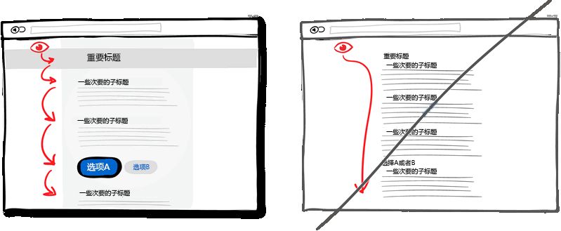 具有層次的設(shè)計(jì)可以將界面上重要的部分與不次要部分區(qū)分開來。要讓界面層次分明,可以在這些方面做文章:對(duì)齊方式,間距,顏色,縮進(jìn),字體大小,元素尺寸等。當(dāng)所有這些調(diào)整運(yùn)用得適當(dāng)時(shí),可以提高整個(gè)界面的可讀性。相比在一個(gè)很直白的界面上用戶一眼就可以從上瞟到底的設(shè)計(jì),這樣分明的設(shè)計(jì)也可以讓用戶放慢速度來慢慢閱讀。這樣也使界面更有特色一些。就好比一次旅行,你可以乘坐高鐵快速到達(dá)景區(qū)(從頁面頂部瞟到底部),但你也可以慢行以欣賞沿途風(fēng)光。所以層次分明的設(shè)計(jì)讓眼睛有可以停留的地方,而不是對(duì)著空白單調(diào)的一個(gè)屏幕。